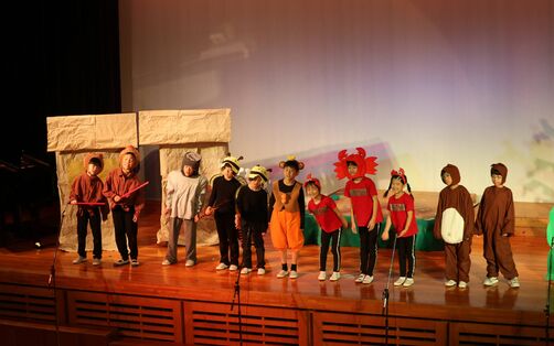 全学年による合唱から始まり、ハンドベル奏・学年ごとの劇・鍵盤ハーモニカ奏・リコーダー奏に続いて